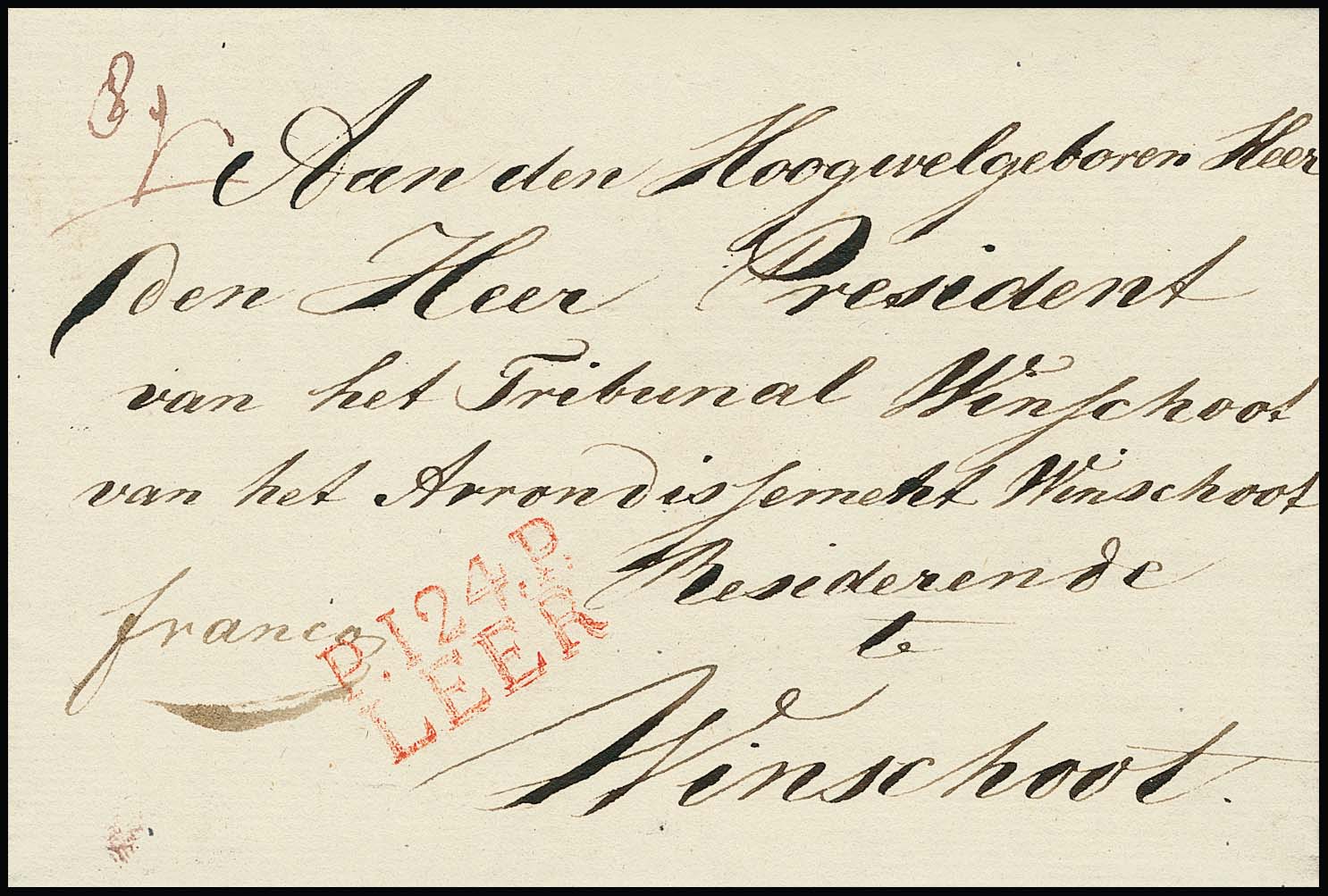 "Leer", 1812, klarer roter L2 "P.124.P. LEER" auf Brief mit Inhalt nach Holland