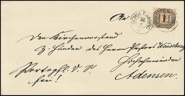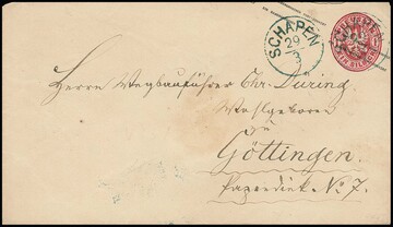 "Schapen", seltener nachverw. K1 klar auf Preußen-Ganzsache 1 Sgr., sign. Banker