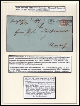 "Steyerberg", besserer K2 auf zwei Kabinettbriefen 1 Ggr. (Nr. 2a und 9), ferner auf Ganzsache (mit 3 Pfg. Botenlohn), sowie zwei unfrank. Briefen