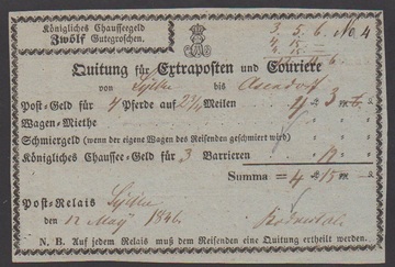 "Syke", 1837-1846, drei Extrapost-Quittungen für Postpferde