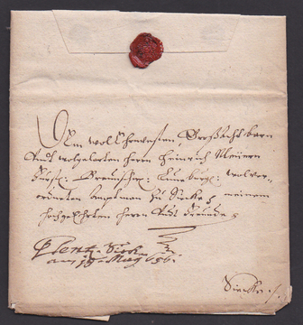 "Thedinghausen", 1656, früher kleiner Altbrief mit Inhalt nach Sycke