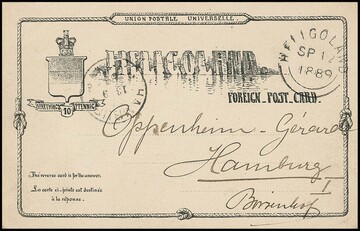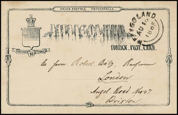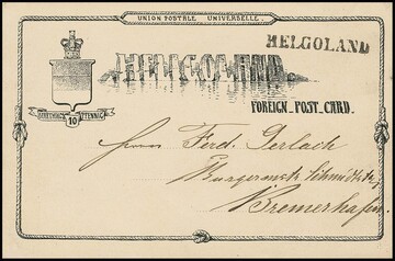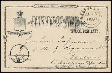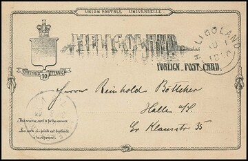 Ganzsache 10 Pfg. rot, Kabinettcouvert mit Helgoländer Rundstempel 1878, adressiert an die Frau des Postmeisters Pilger in Berlin mit Ankunftsstempel. Mi. 300,-