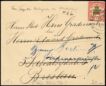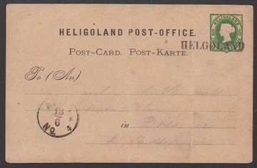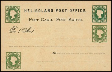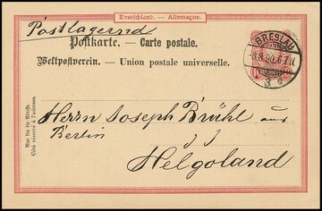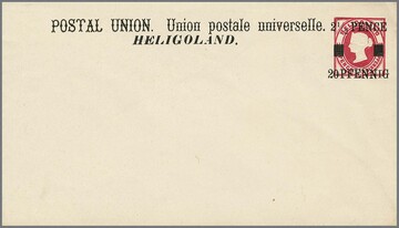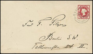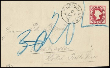 Ganzsache 10 Pfg. rot, Kabinettcouvert mit Helgoländer Rundstempel 1878, adressiert an die Frau des Postmeisters Pilger in Berlin mit Ankunftsstempel. Mi. 300,-