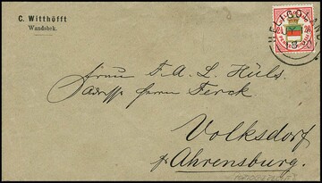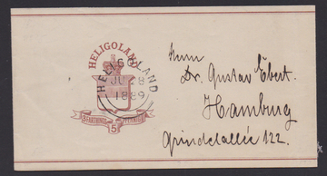 Streifband-Ganzsache 5 Pfg. gebraucht 1889 von Helgoland nach Hamburg, Mi. 200,-