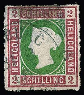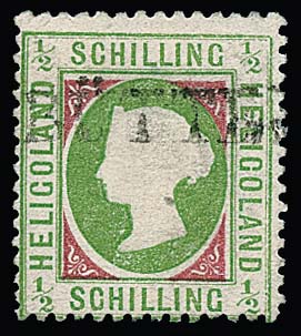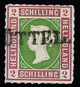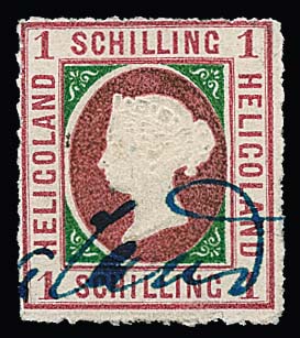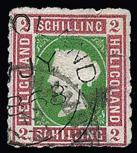 1 Sch. rosakarmin/grün, Prachtstück mit besserer handschriftlicher Entwertung "(Helgo)land"