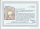 2 Sch. lilakarmin/grün (links Randfehler, u.a. etwas dünn) mit hierauf seltener Abstempelung durch K1 "Geestemünde", Marke von Bogenfeld 4 mit Plattenfehler "Fleck vor der Nase und hinter Haarknoten". Sign. Lemberger, Decker und Fotoexp. C. Brettl