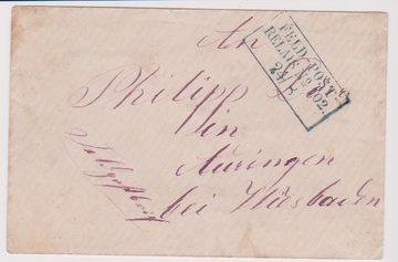Feldpost, 1871, 24.8., ("Lagny"), kleines Couvert mit blauem Ra3 "FELD-POST-RELAIS NO. 102"