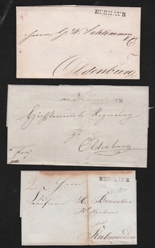 "Burhave", je vorphil. L1 auf drei Briefen (einer kl. Mgl., einer ex Ohrt)
