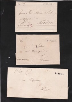 "Minsen", vier Briefe, dabei der vorphil. L1 auf drei Briefen 1833 ff. mit Inhalt
