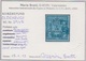 1 Gr. trübblau mit Plattenfehler "spitze rechte 1 und linke untere Ecke ausgebrochen", kleine Mängel, mit Ra2 von Steinhausen. Mi. für billige "a" 600,-