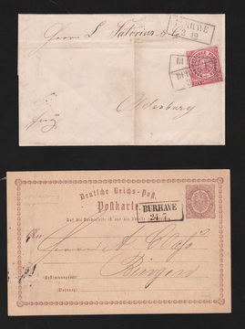"Burhave", nachverw. Ra2 auf Faltbrief mit 1 Gr. NDP und auf 1/2 Gr. Brustschildkarte (Falten)