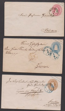 Ganzsachen 1 bis 3 Gr., drei gebrauchte Prachtcouverts, Mi. 550,-