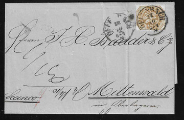 9 Kr. ockerbraun, perfektes Exemplar auf gef. Brief mit K1 "Offenbach" nach Bayern, Fotoexp. Jäschke-L.