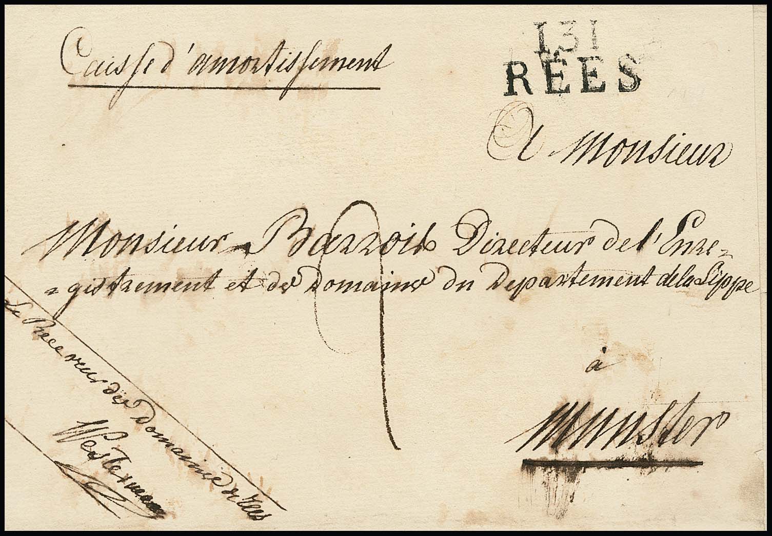 "Rees", (1812), schwarzer L2 klar auf Briefhülle nach Münster, Feuser 2886-2/800,-