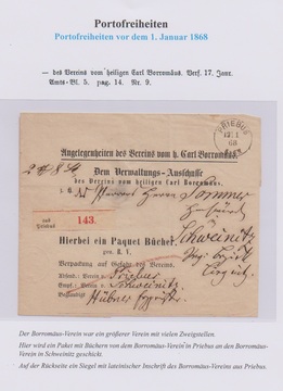"Priebus", 1868, K1 auf seltenem portofreiem Vordruck-Paketbegleitbrief "Angelegenheiten des Vereins vom h. Carl Borromäus"