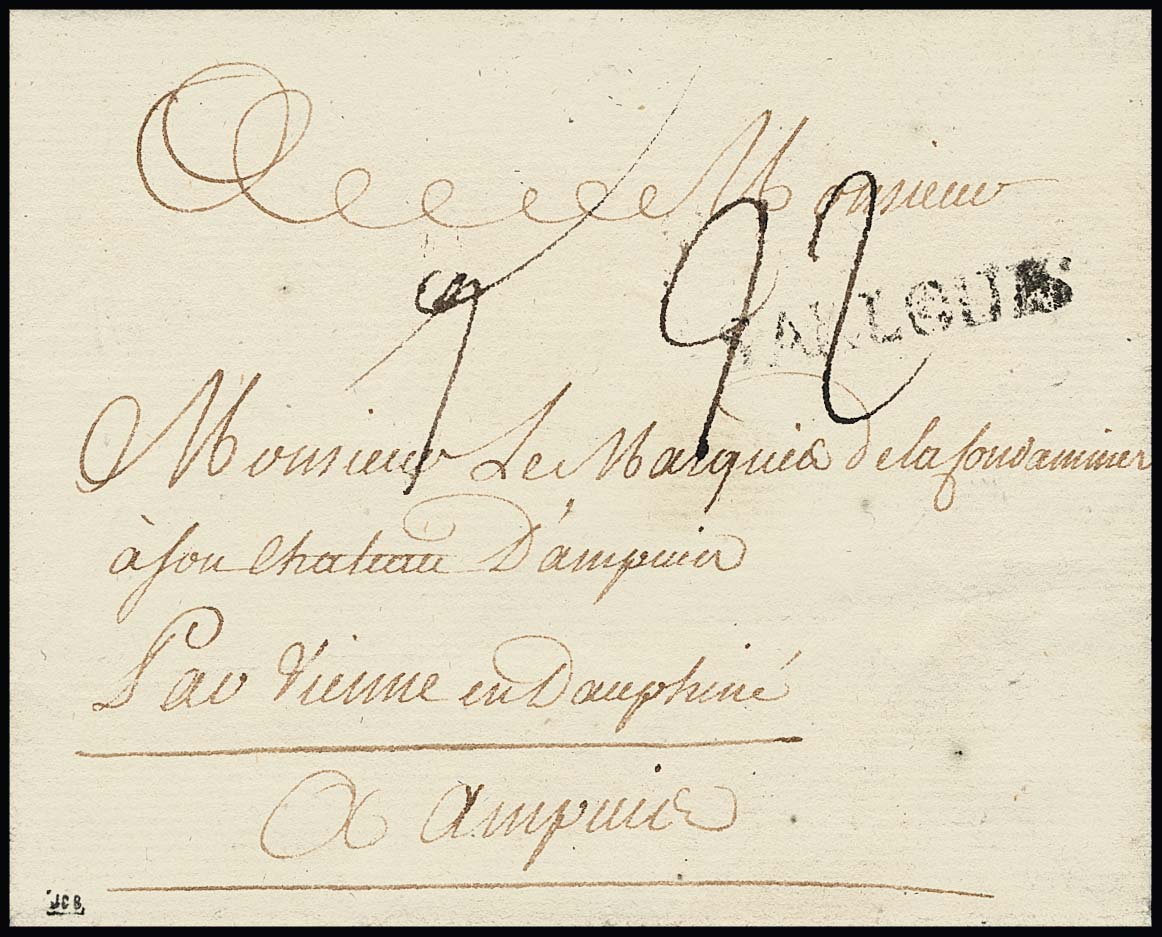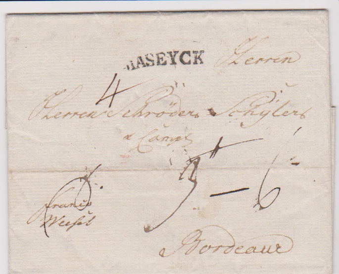 "Rügenwalde", 1787, früher Auslandsbrief nach Bordeaux, hs. "franco Wesel"