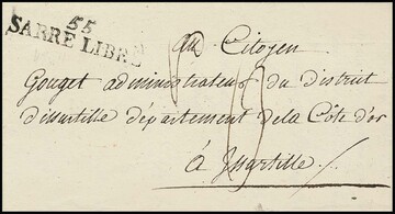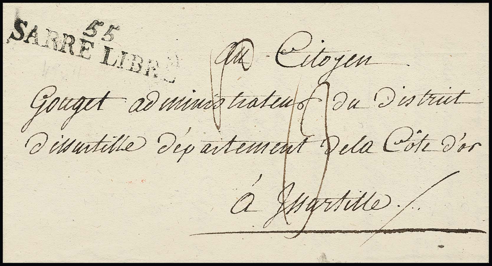 "Saarlouis", 1794, klarer L2 "55 SARRE LIBRE" auf Brief mit Inhalt nach Marseille, Feuser 3064-9/250,-