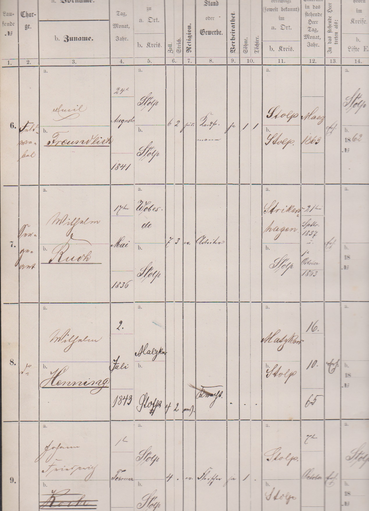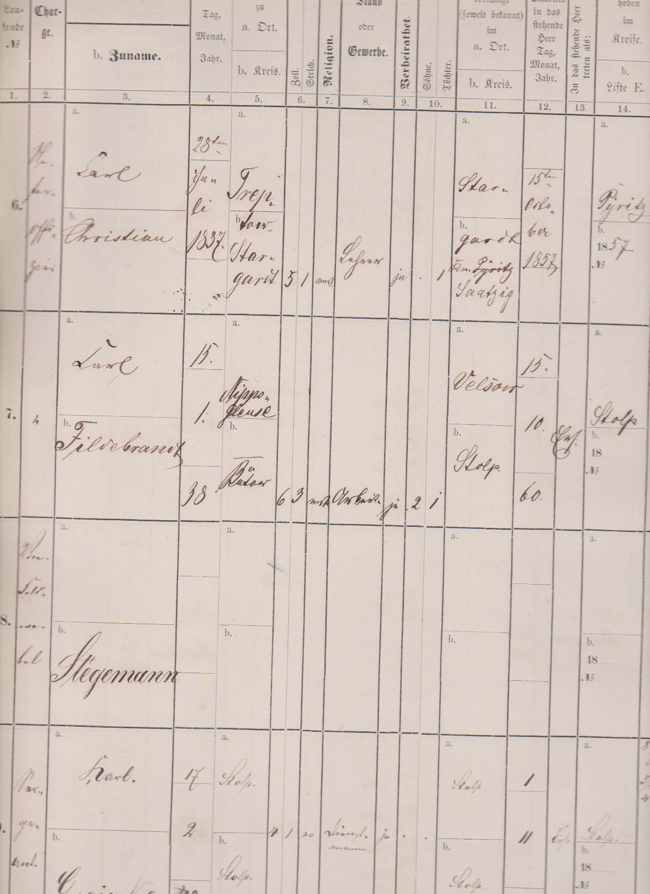 Feldpost, 1860-70 (ca.), kpl. großformatiges Matrikelbuch der 4. Kompagnie des 2. Besatzungs-Bataillons Stolp b. Pommern, Landwehr-Regiment No. 49, mit Eintragungen der Dienstzeiten, mitgemachten Schlachten usw., Abschlußvermerk "Freundlich, Feldwebel, Colberg, den 16ten August 1870", nur noch wenige Ex. erhalten