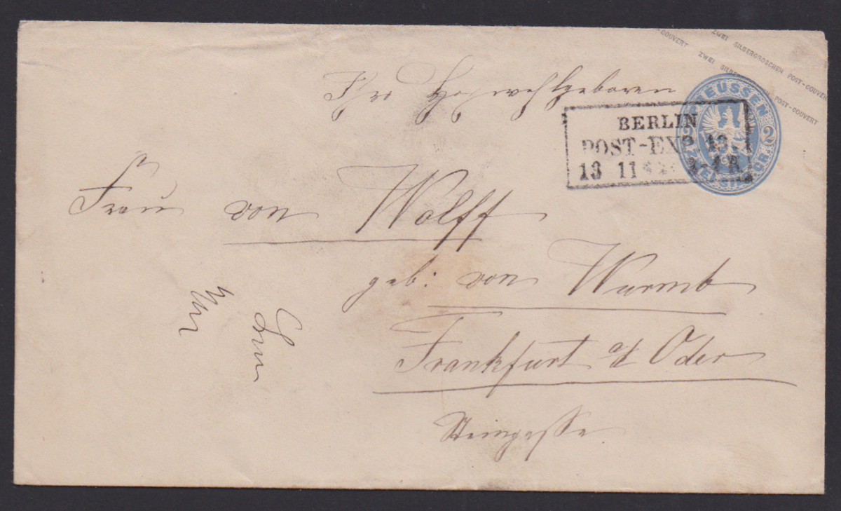 "Berlin Post-Exp. 13", guter Ra3 (KHBW 387a, 500 P.) klar auf Wappen-Ganzsache 2 Sgr., sign. Banker