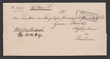 "Berlin", 1847, seltener Schrägschrift-Ra2 vom 5.10. klar auf Brief mit Inhalt "Mit der Reitpost" nach Graudenz