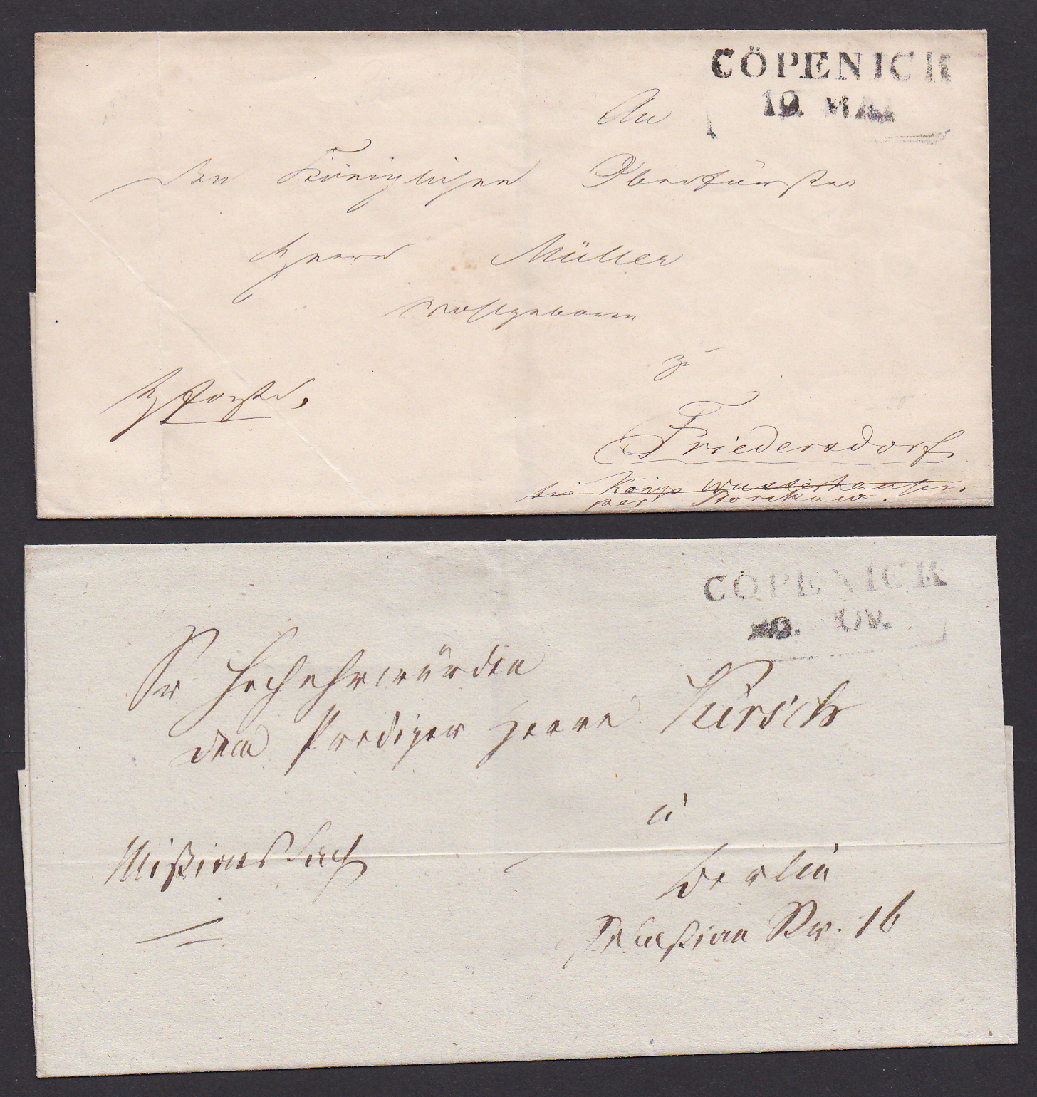 "Berlin", 1867/72, blauer K1 des Hofpostamtes auf zwei Postvorschuß-Vordruckbriefen, KHBW 8a, zur Zeit des Deutschen Reiches bisher unbekannt (nur bis 7.12.71 gelistet)
