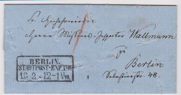 "Berlin Stadtpost-Exp. VIII", Ra3 1860 auf Forwarded-Brief gelaufen als Ortsbrief, geschrieben in "Almadscha bei Toluscha in der Türkei", mit Räucherschlitzen (Cholera), ungewöhnlich