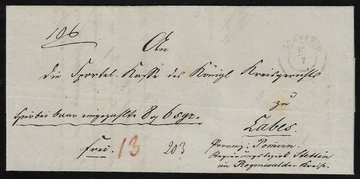 "Berlin", 1861, roter Ra2 des Hofpostamtes rs. auf Postanweisungsbrief mit K2 "Schwerin" über Berlin nach Labes, KHBW 34