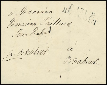 "Bocholt", (1813), seltener L2 "P.131.P. BOCHOLT" auf Briefhülle nach Osnabrück