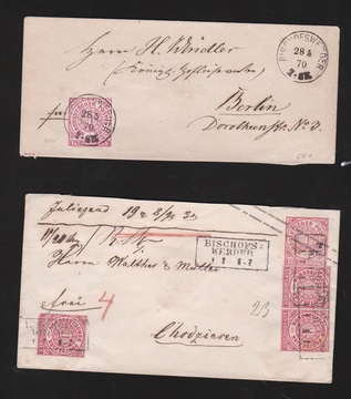 "Bischofswerder", nachverw. Ra3 auf NDP-Ganzsache 1 Gr. mit ZuF dreimal 1 Gr. NDP als Wertbrief, sowie neuer K1 auf Couvert (rs. nicht ganz kpl.) mit Ganzsachen-Ausschnitt 1 Gr.