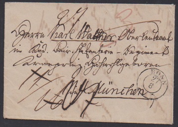 "Bonn", 1841, K2 auf Brief an einen Leutnant im Inf.-Rgt. in München