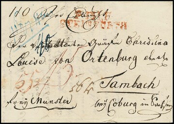 "Burgsteinfurt", 1812, roter L2 "P.131.P. STEINFURTH" auf interessant austaxiertem Brief mit Inhalt nach Tambach, Feuser 520-3/600,-
