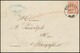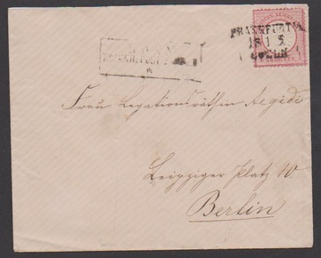 "Bonn Eisenb. Post Bureau", alter aptierter nachverw. Ra3 als Stationsstempel, nebst Zug-L3 "Frankfurt-Coeln", auf Brief 1 Gr. Brustschild (ein kurzer Zahn, L15), Fotoexp. Krug