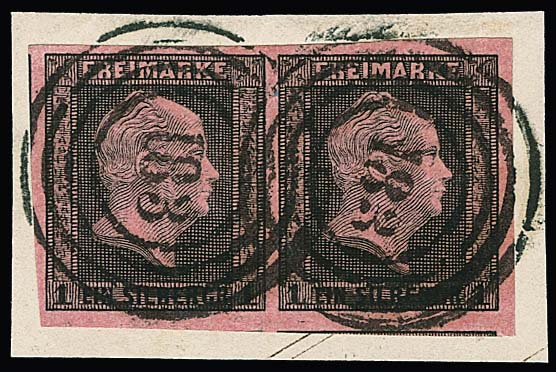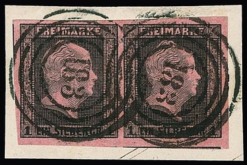 1 Sgr. schw./rosa, ungewöhnlich riesenrandiges Paar (Nebenmarken) auf Luxusbriefstück mit NS "183"