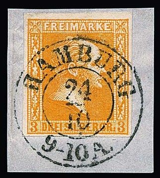 3 Sgr. orange, dunkelorange (dopp. sign. Krause, Feuser) und gelborange, drei Kabinett-/Luxusbriefstücke je mit K2 "Hamburg"