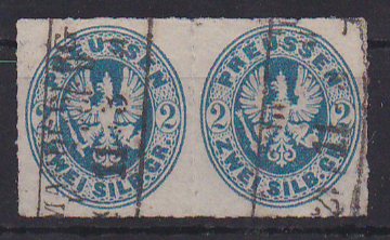 2 Sgr. preußischblau, gestempeltes Kabinettpaar, sign. Bühler. Mi. 150,-