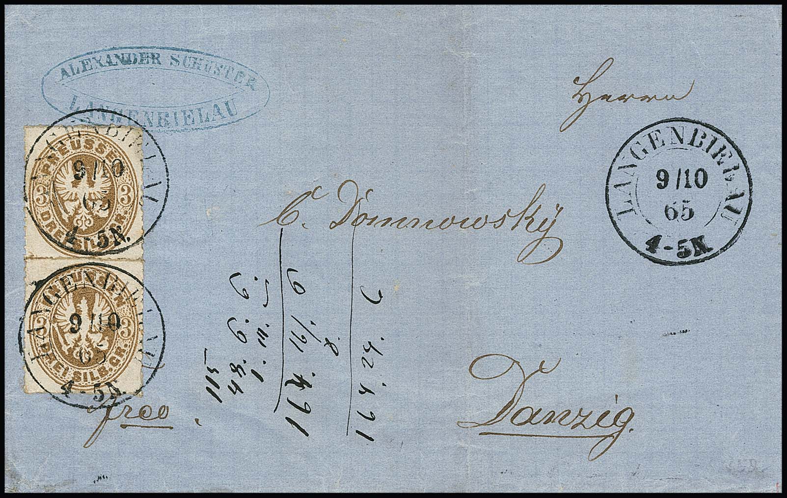 3 Sgr. ockerbraun auf Ganzsache 2 Sgr. blau im Großformat, als Einschreibebrief von Berlin nach Bückeburg