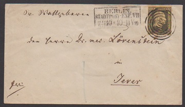"103" nebst Ra3 "Berlin Stadtpost-Exp. VII" klar auf Prachtbrief 3 Sgr. schw./maisgelb nach Jever