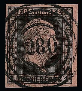 "283" (Cronenberg) klar, nebst leichtem Blaustrich, auf Kabinettstück 3 Sgr.