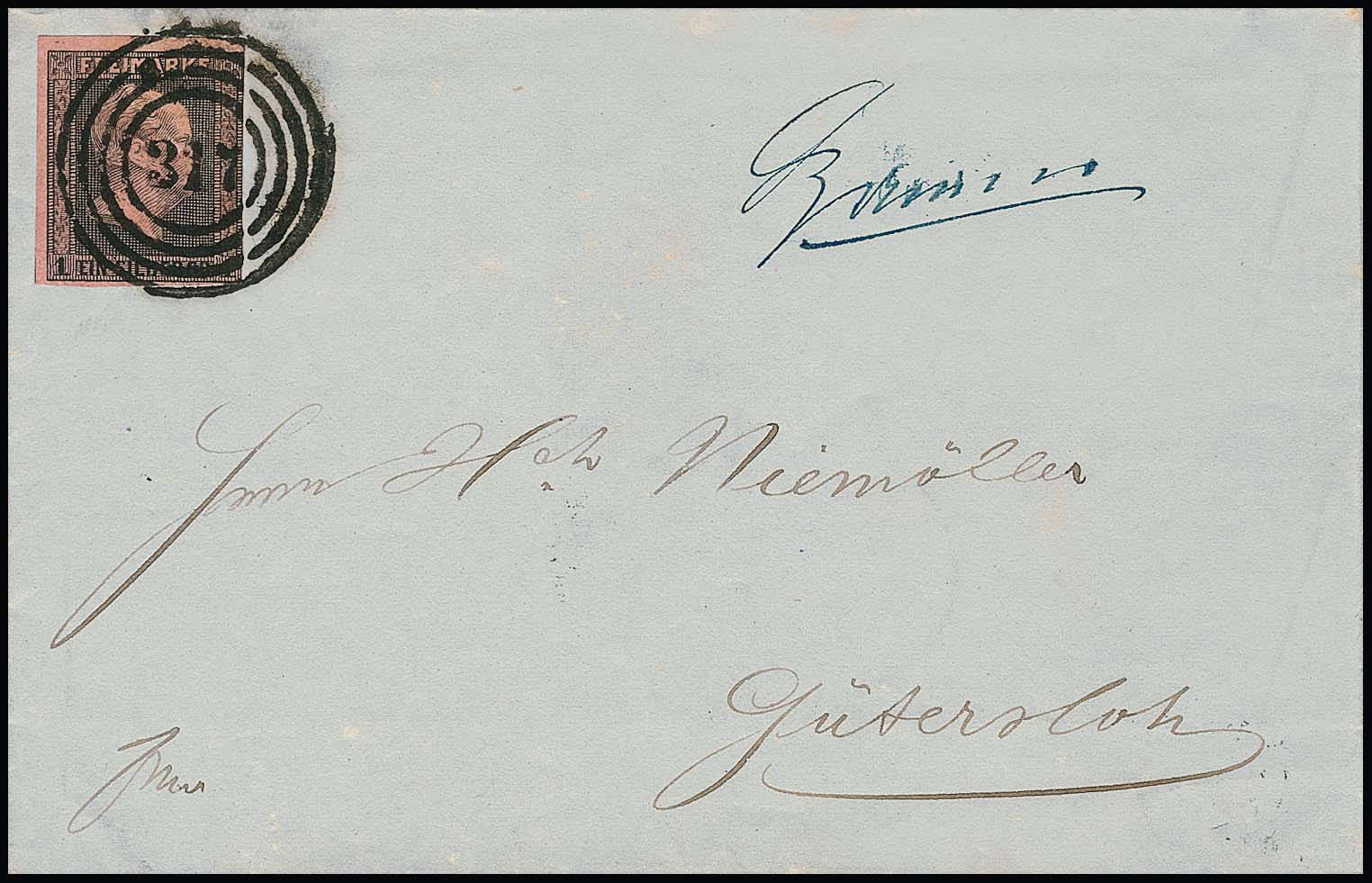 "317" (Bahnpost Köln-Deutz) nebst hs. Aufgabe "Hamm" auf Brief 1 Sgr. (rechts ber.)