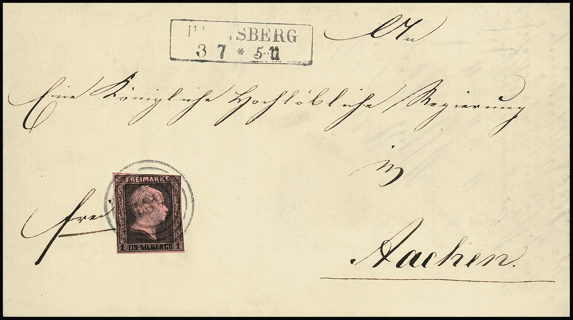 "601" nebst Ra2 "Heinsberg" klar auf Faltbrief mit etwas berührter 1 Sgr., auf Brief ein seltener Rheinland-NS!