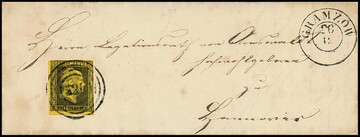 "526" nebst K2 "Gramzow" klar auf getöntem Brief mit 3 Sgr. (etwas ber.)