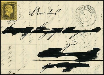 "539" nebst K2 "Grevenbroich" auf Faltbrief (Adresse gestrichen) mit Prachtstück 3 Sgr.