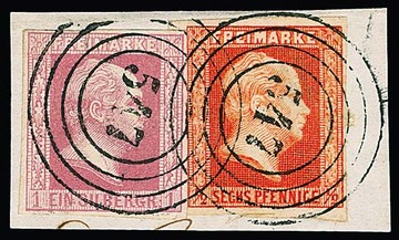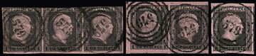 "579" (Hamm) auf zehn Werten inkl. berührtem Dreierstreifen 1 Sgr., überrandigem Paar 1 Sgr., sowie auf einzelnen Luxustücken