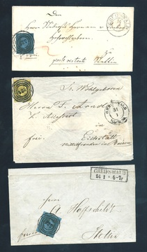 "535" nebst K2 bzw. Ra2 "Greifswald" auf drei Prachtbriefen 2(2) bzw. 3 Sgr.