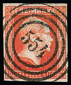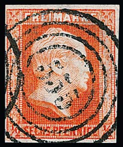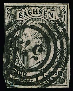 "573" (Halle Bahnpost) als seltene Fremdentwertung auf Sachsen 1 Ngr. Johann (links etwas fehlerhaft)