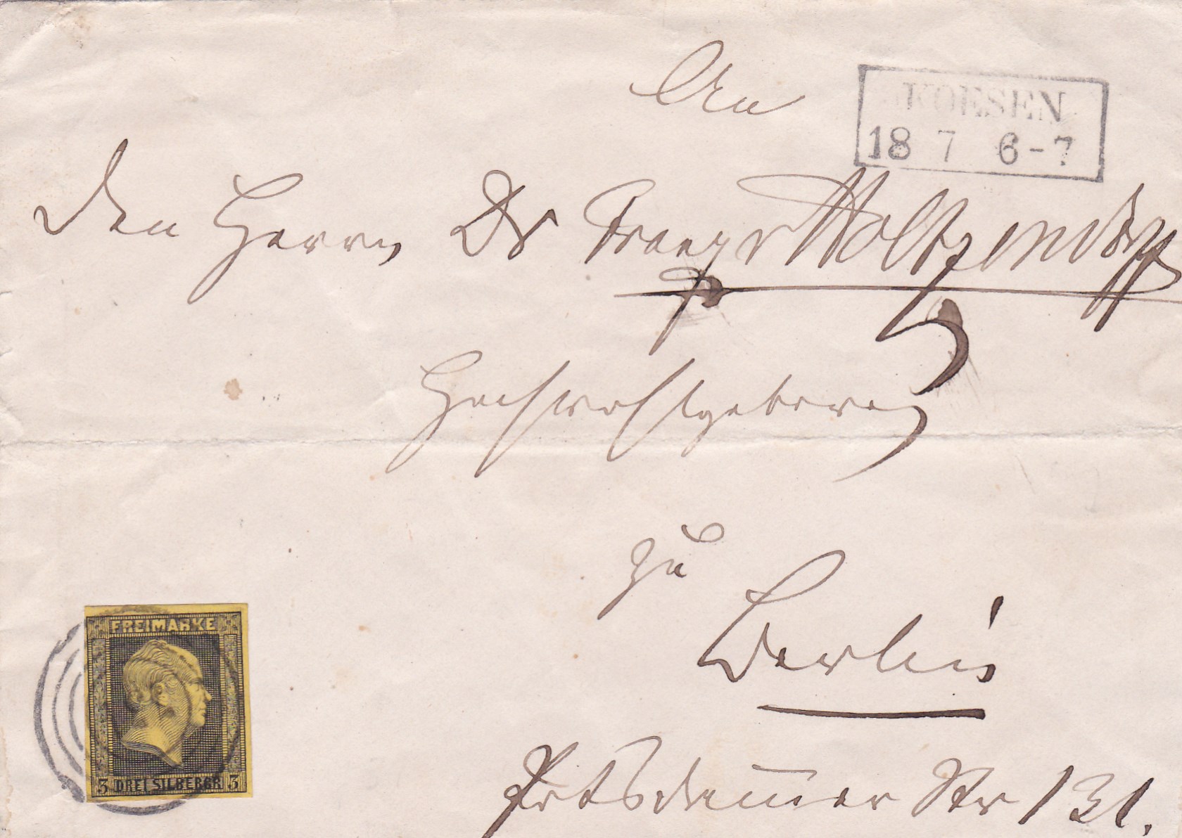 "791" (Landsberg/Ostpr.) zentrisch auf Prachtbriefstück 3 Sgr.