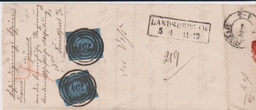 "794" nebst Ra2 "Landsberg i.W." auf Vorderseite von Post-Ins.-Doc. mit zwei ber. 2 Sgr.
