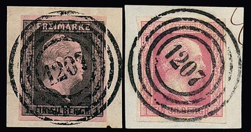 "1207" (Rawitsch) je ideal zentrisch auf zwei Luxusbriefstücken 1 Sgr.