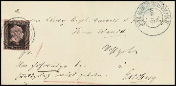 "1139" nebst K2 "Pilgramsdorf" klar auf kleinem Faltbriefchen (rs. nicht ganz vollständig) mit Kabinettstück 1 Sgr., per Expreß adressiert, auf Brief seltener Schlesien-NS!