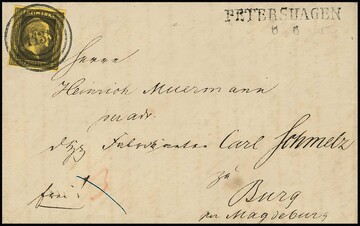"1135" nebst L2 "Petershagen" auf Prachtbrief 3 Sgr. (natürliche Aufklebeknitter kein Mangel)